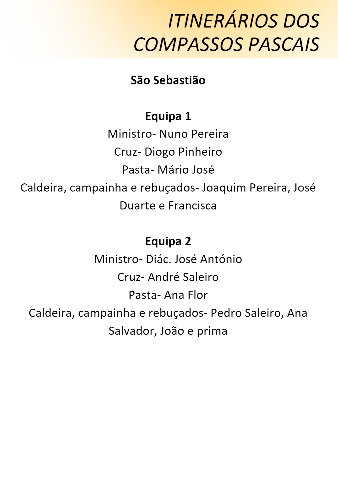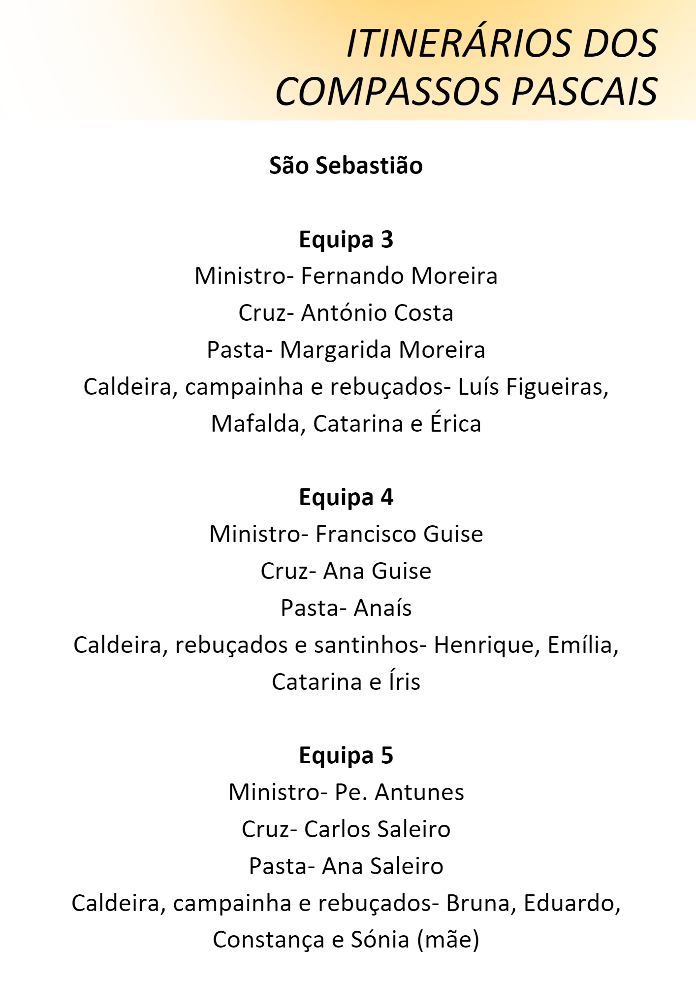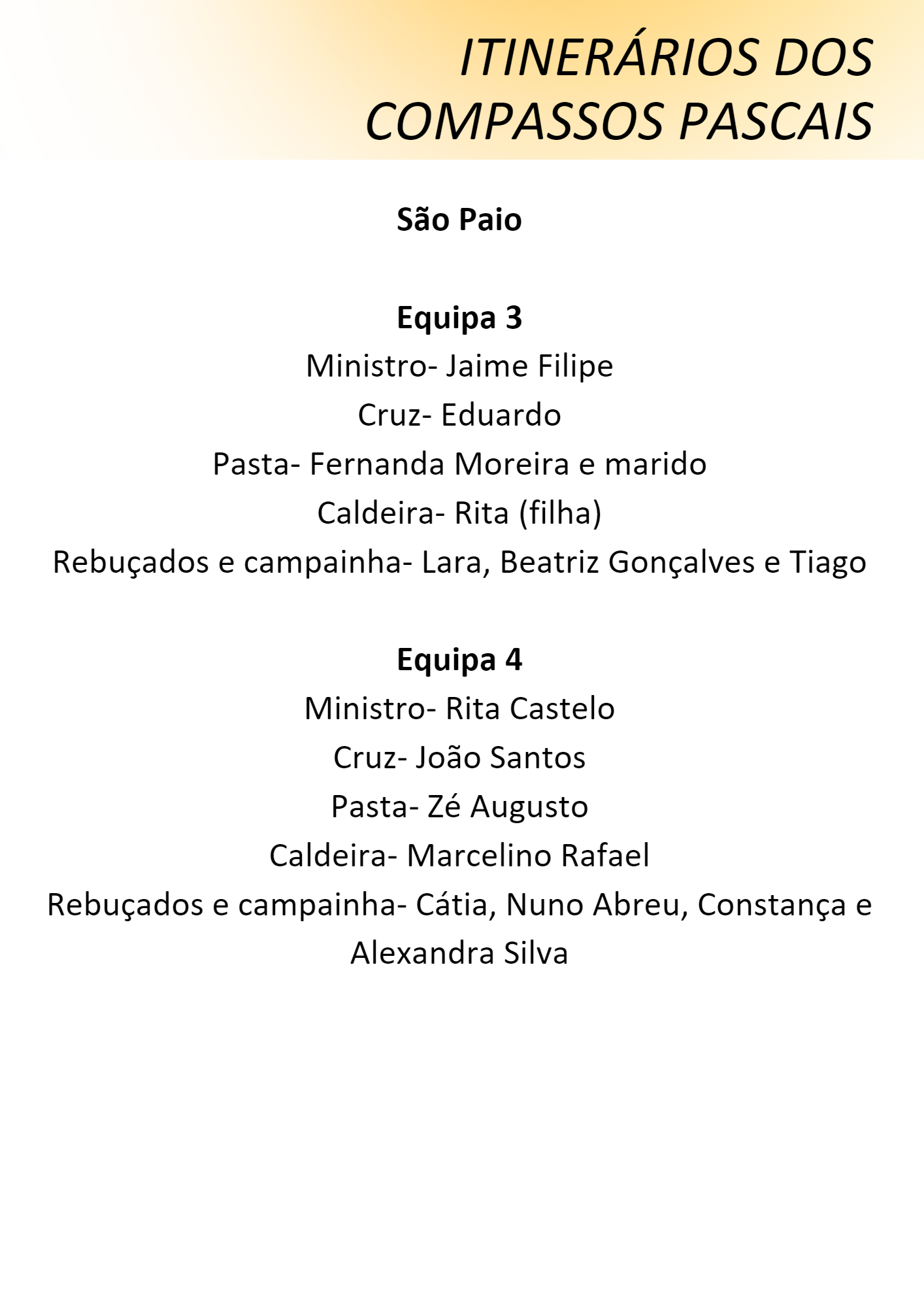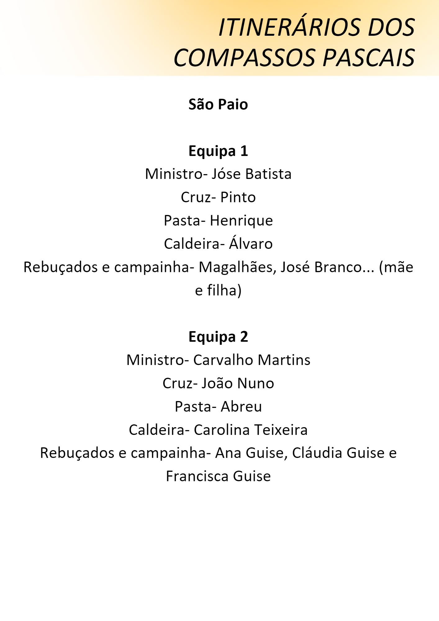 ITINERÁRIOS E EQUIPAS DOS COMPASSOS PASCAIS