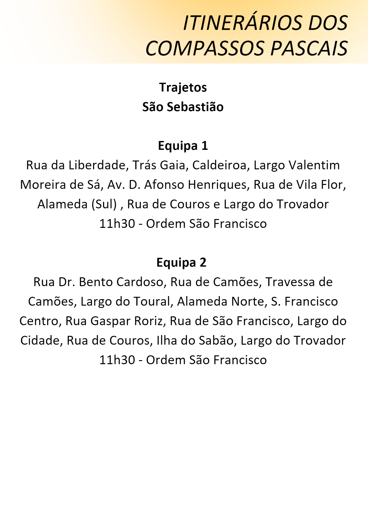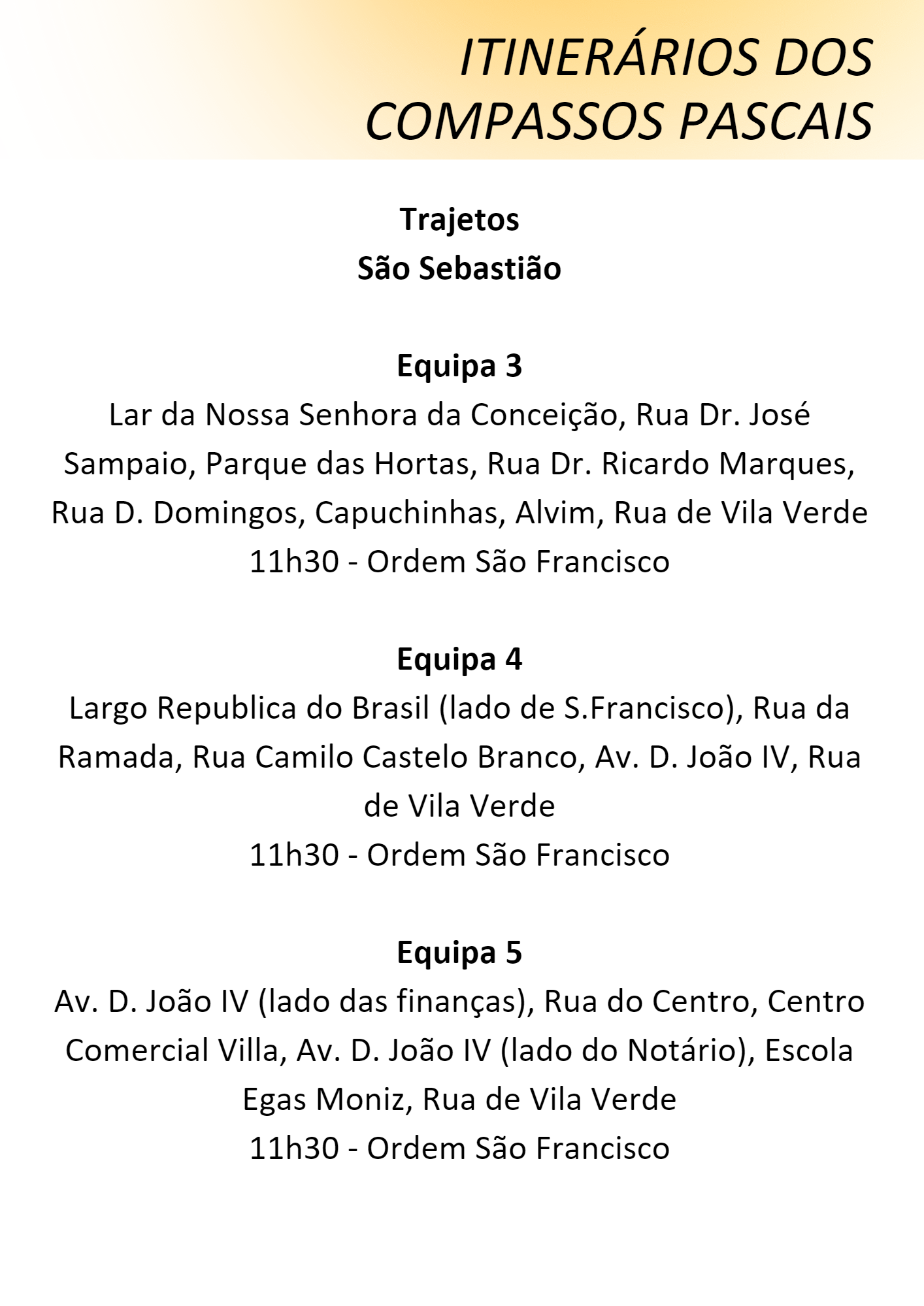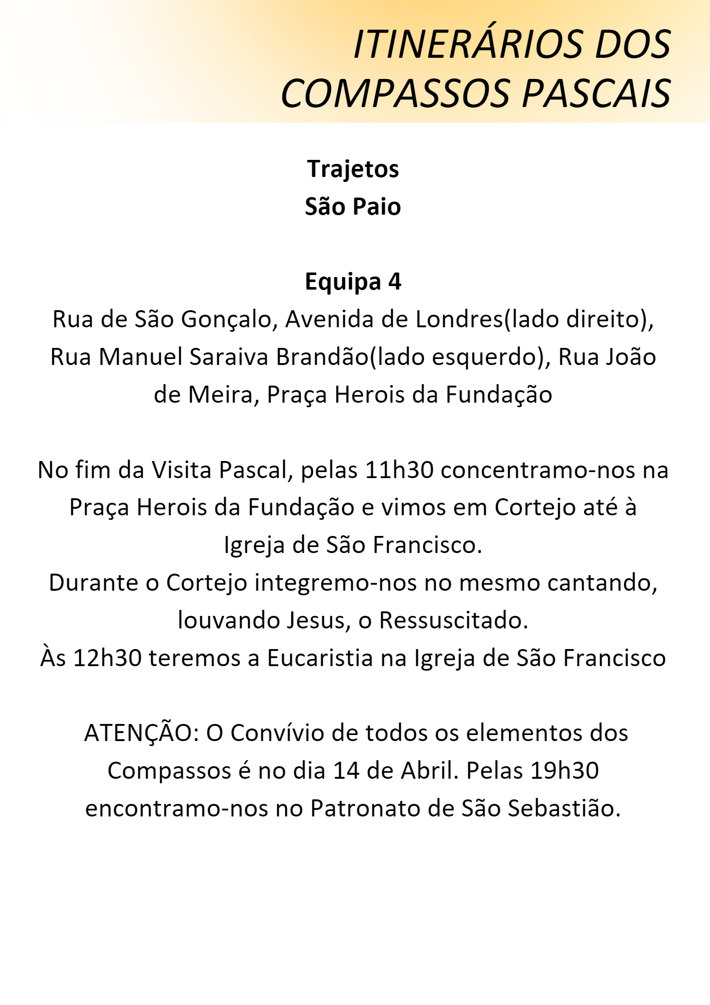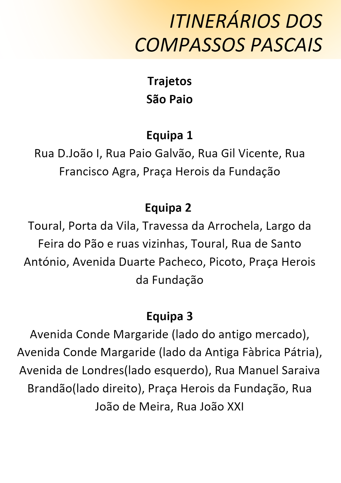 ITINERÁRIOS E EQUIPAS DOS COMPASSOS PASCAIS
